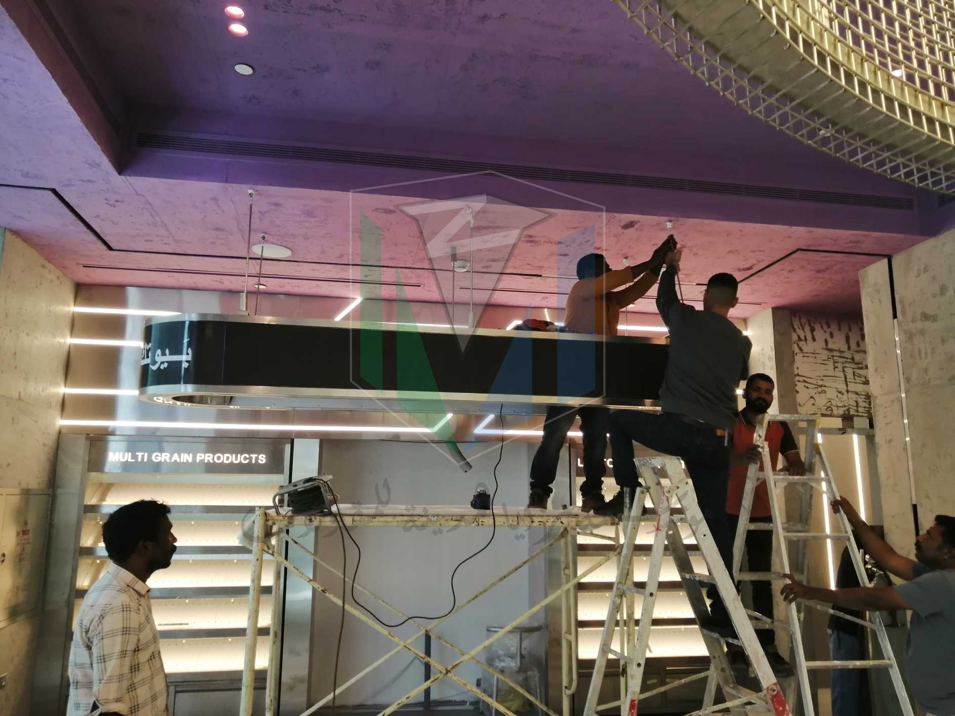 مشروع تركيب شاشة LED متحركة معلقة | مطعم بيوتك الصحي – مزايا المدينة للمقاولات