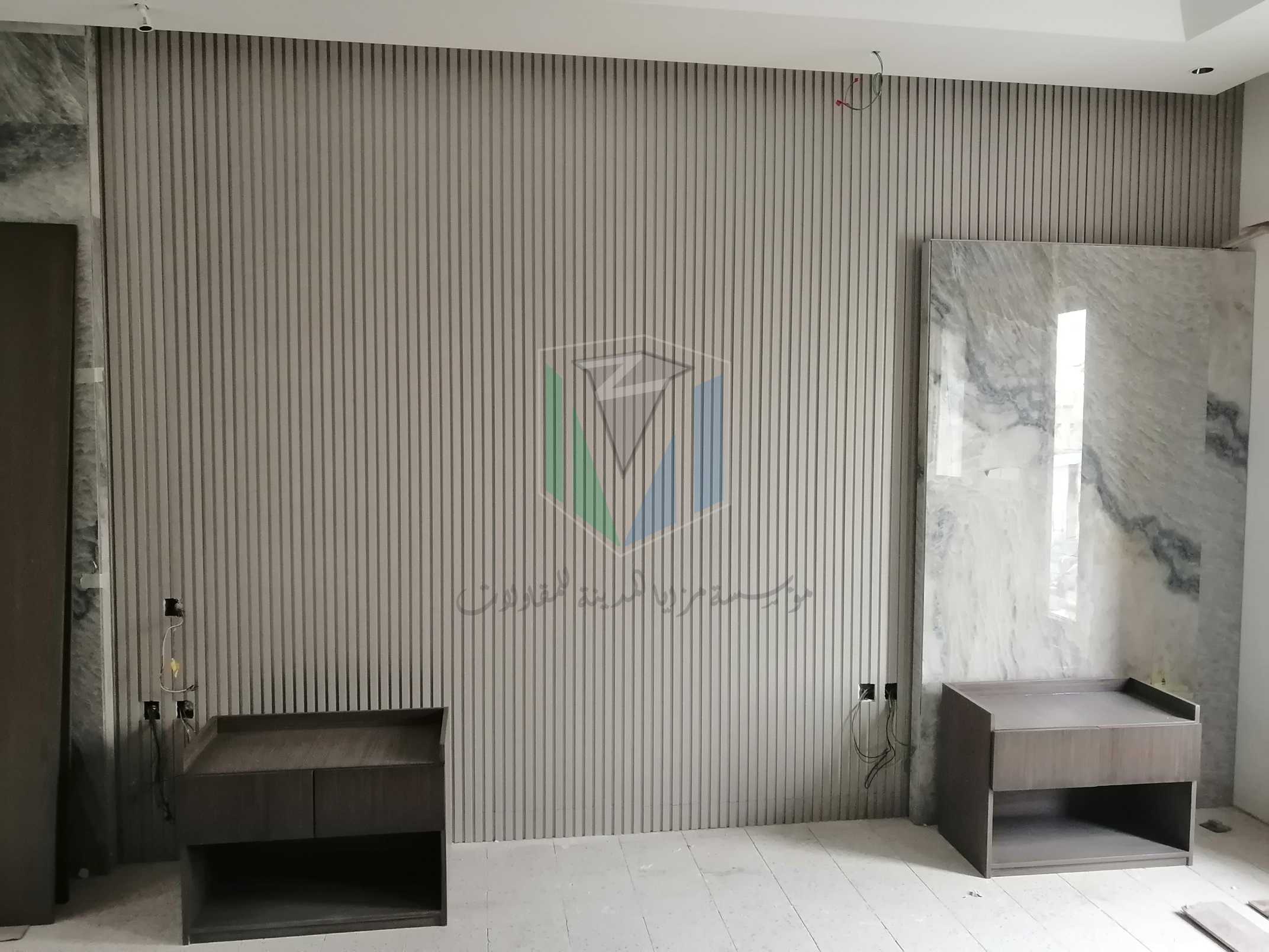 تنفيذ ديكورات جدران مودرن باستخدام ألواح مكسّاة بخامات عالية الجودة وتفاصيل خطوط طولية تضفي فخامة وبساطة في نفس الوقت