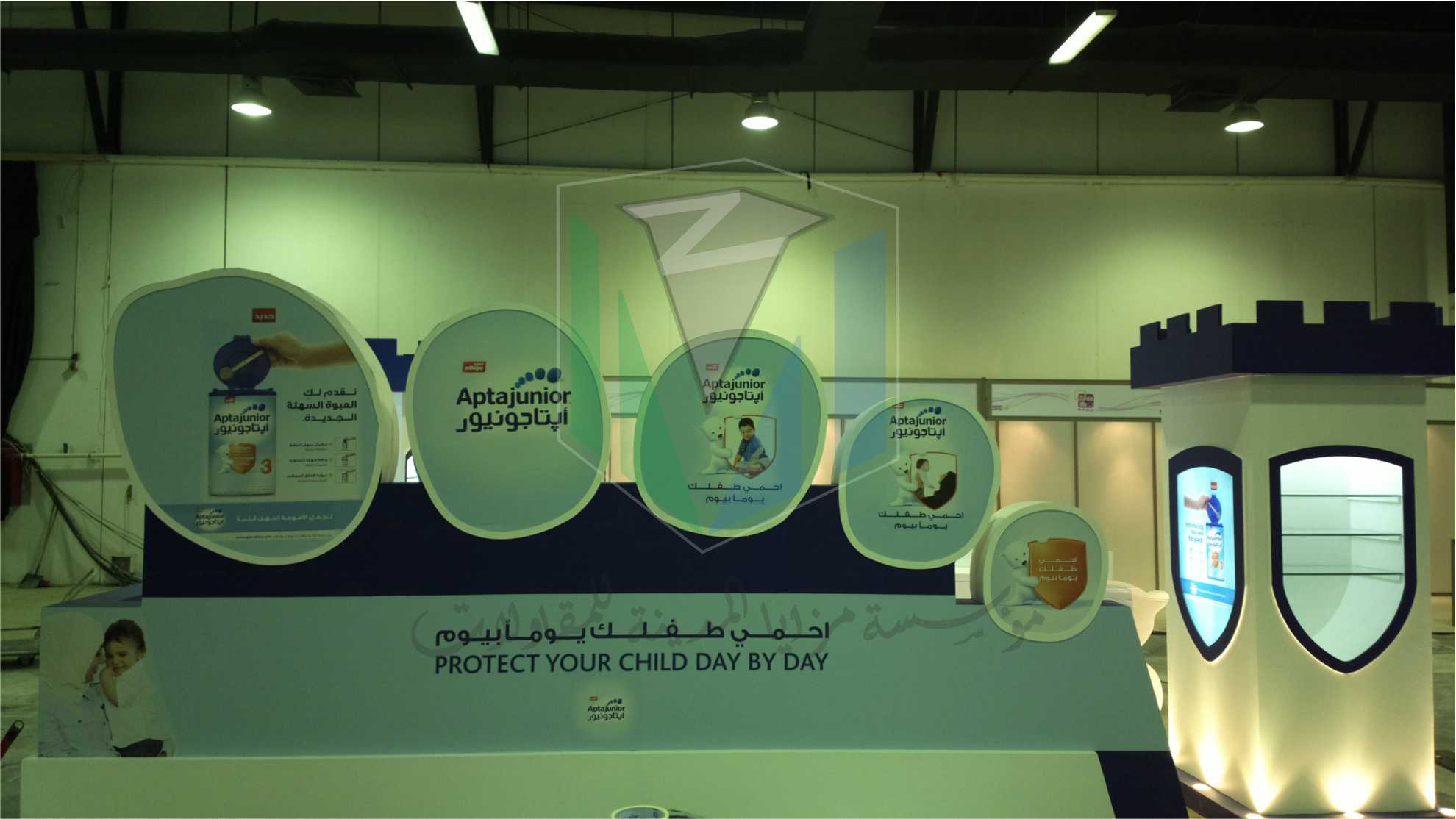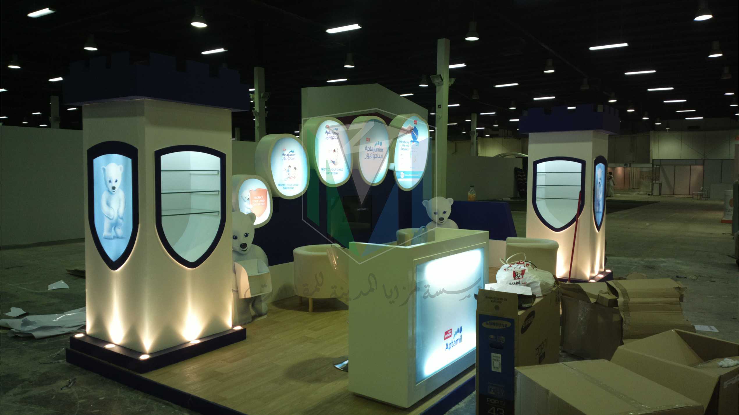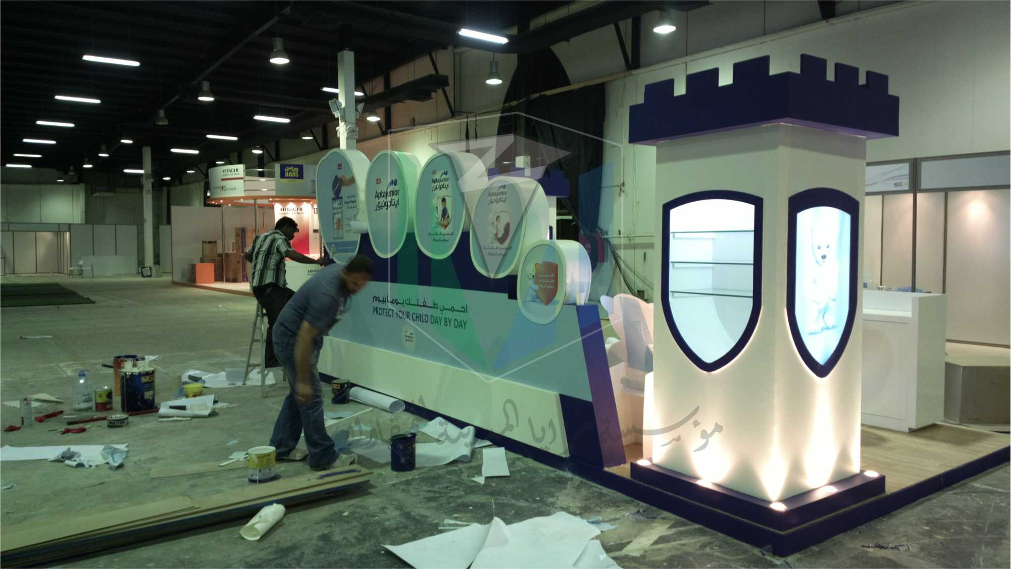 ضمن مشاريع تجهيز المعارض والفعاليات، نفذت مؤسسة مزايا المدينة للمقاولات تصميمًا متكاملًا لـ بوث عرض تجاري لشركة رائدة في مجال منتجات الأطفال، وذلك ضمن إحدى الفعاليات الكبرى داخل قاعة معارض احترافية.
